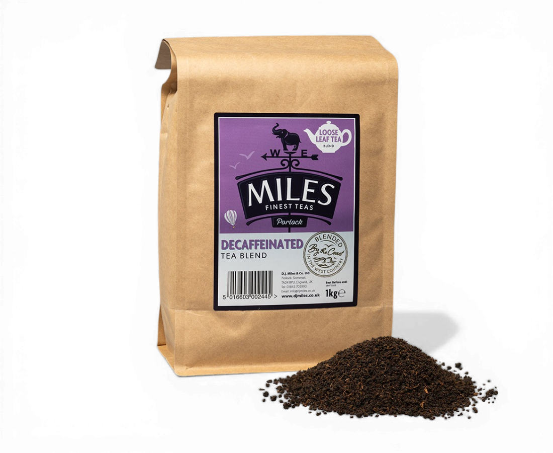 Decaf tea is a popular choice for those looking to reduce their caffeine intake while still enjoying the taste of tea. Although decaf tea does contain some residual caffeine, the amount is significantly lower compared to regular tea. On average, an 8-ounce cup of decaf tea contains about 2 to 5 milligrams of caffeine, whereas a regular cup of tea can contain anywhere from 30 to 70 milligrams of caffeine. The decaffeination process involves removing most of the caffeine from the tea leaves, resulting in a beverage that is much lower in caffeine content. It's important to note that the exact caffeine content can vary depending on factors such as the type of tea and the specific decaffeination process used by the manufacturer. Here at Miles, our decaf tea can certify that the caffeine content is less than or equal to 0.10%.